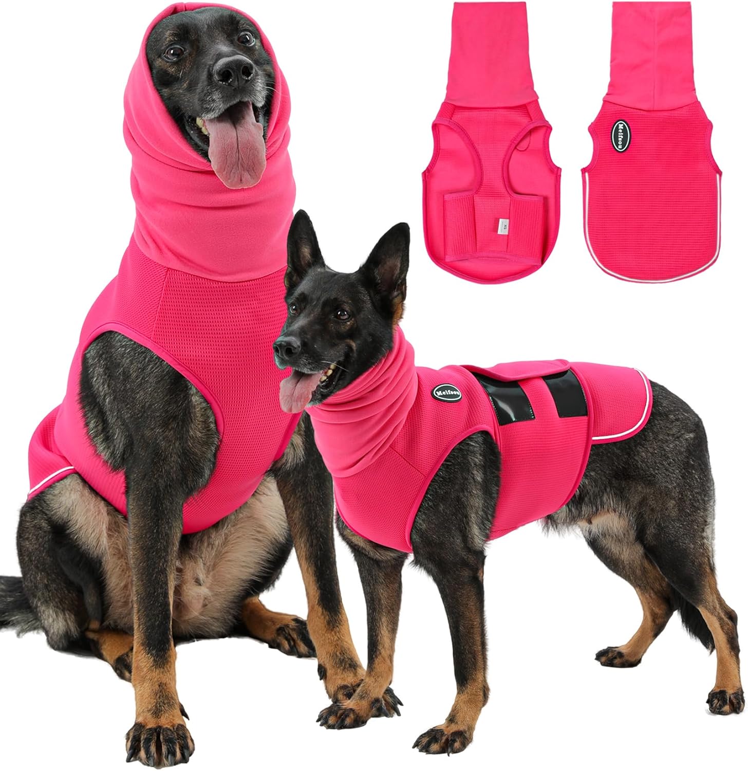 Dog Anxiety Vest with Hood, Skin-Friendly Thunder Jacket for Dogs, All-in-One Dog Calming Shirt with Hood for Thunder, Fireworks, Separation - Keep Pet Calm Without Medicine, Rose, XL