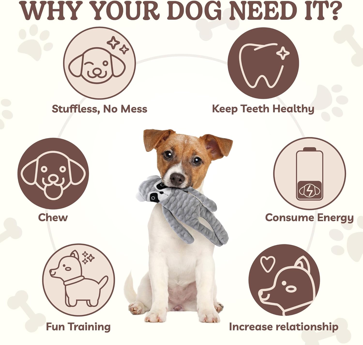 - No Stuffing Dog Toys, Safe to Play: Unstuffed dog toys means no mess and no choking risks. Embroidered eyes effectively keep pet always in a safe environment when chewing or playing. Soft puppy teething toys can provide gum massage and relief oral discomfort. Machine washable and skin-friendly material allows dogs to bite freely without causing any damage to their teeth