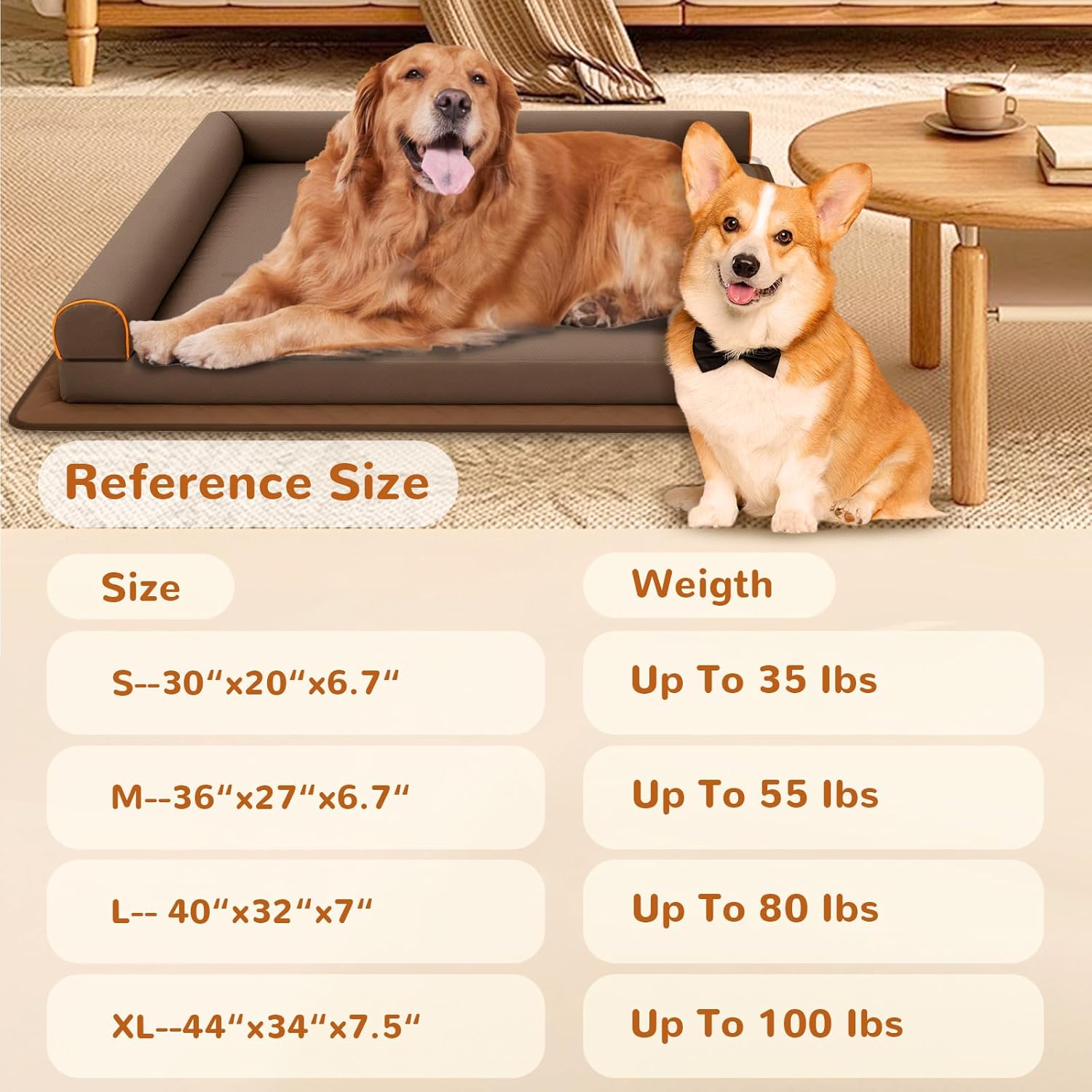 Dog Beds Medium Size Dog Waterproof Washable Pet Bed Memory Foam Orthopedic Chew Proof Dog Couch with Anti-Slip Mat (Brown)