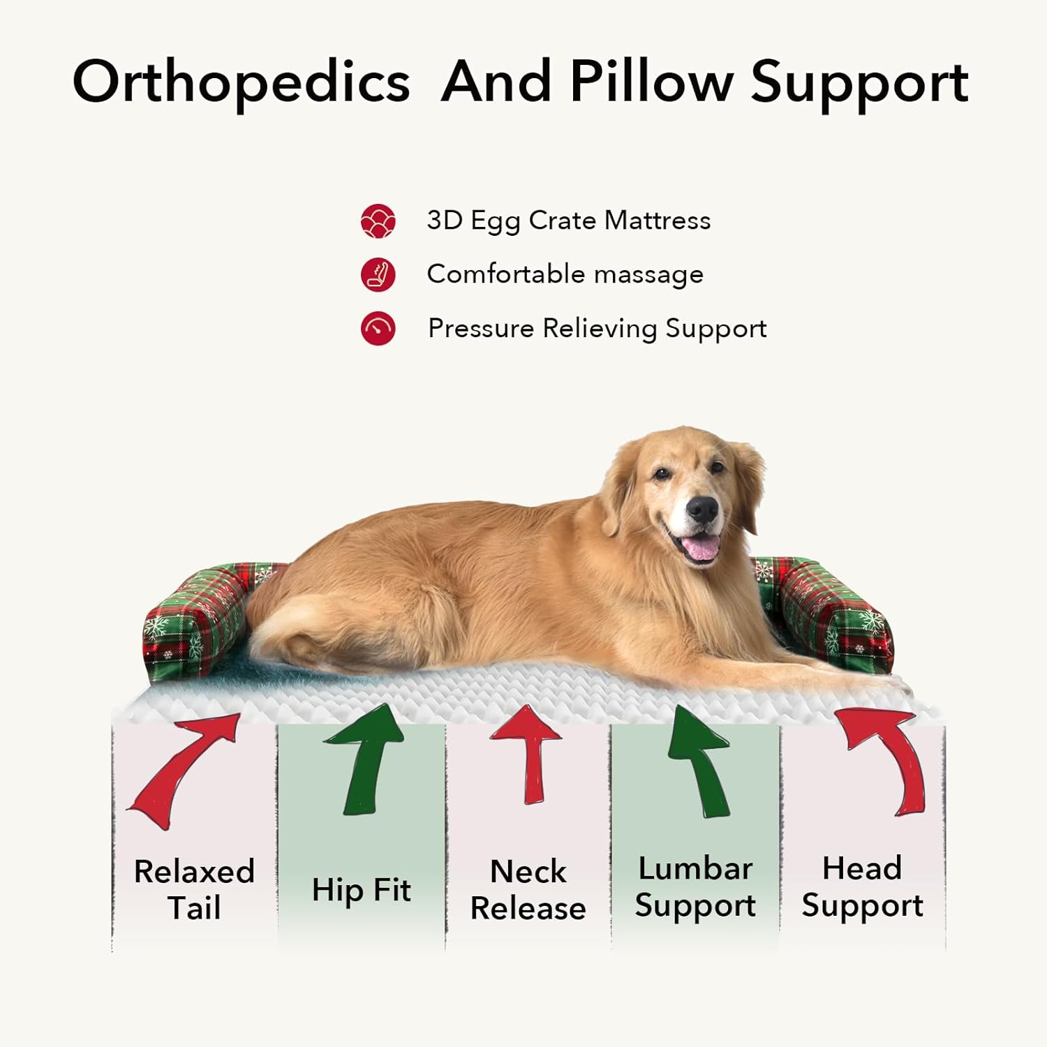 Christmas Dog Bed Large Sized Dogs-Orthopedic Waterproof Dog Beds,Comfort Pets Couch Sofa with Washable Removable Cover,Christmas Holiday Themed Pet Bed for Large Cat Dogs