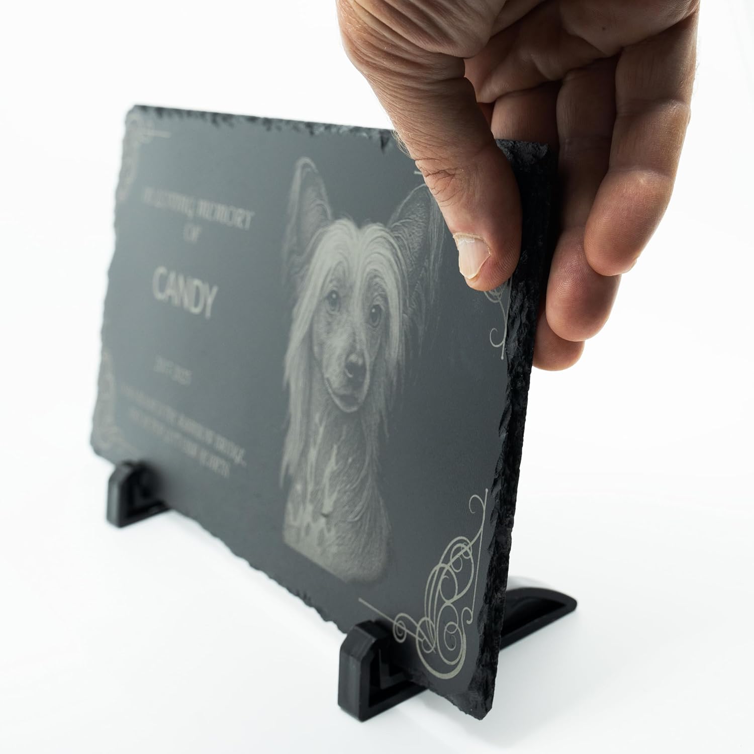- 6x8 Dog Memorial Plaque – Premium slate with raw edges and matte finish. A meaningful dog headstone for indoor or outdoor use.