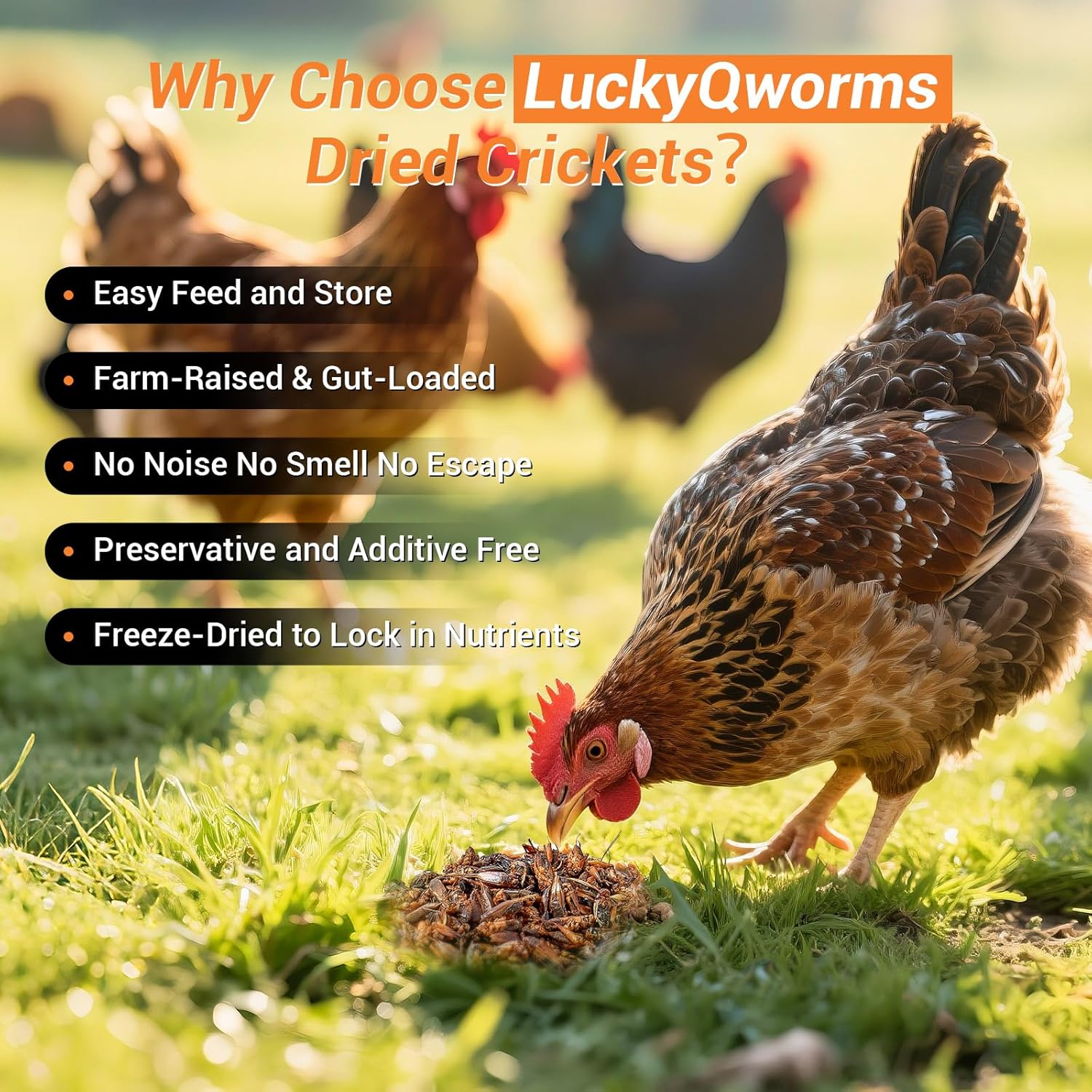 - High Natural Insect Nutrition: Farm-raised LuckyQworms crickets are nutrient-enhanced with greens & fruits, then freeze-dried to preserve flavor, vitamins, and minerals. A 100% natural protein source for reptiles, birds, chickens, and small pets