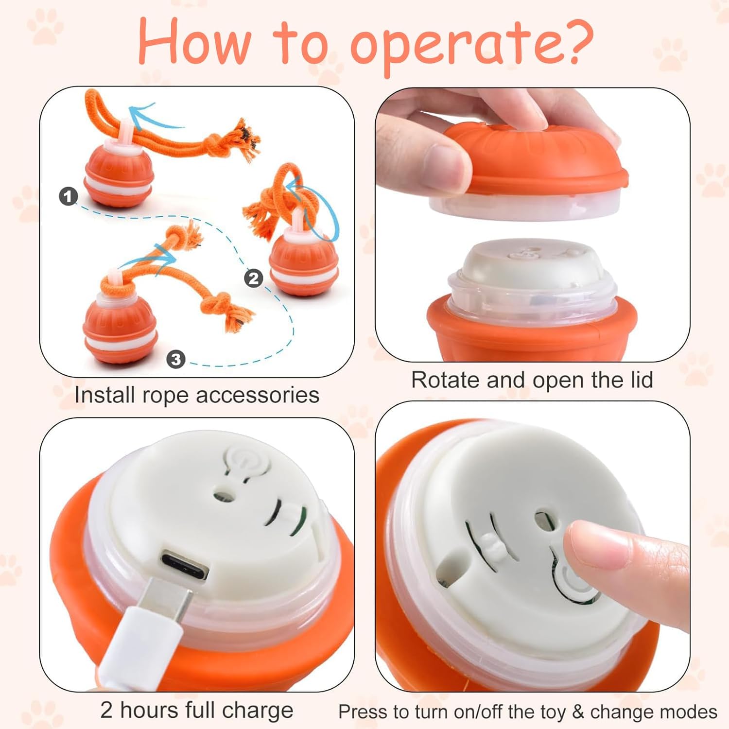 - Interactive Dog Toy:Connect the automatic moving ball with long rope,then activate the ball. Irregular smart rolling with a long rope teaser provides hours of rolling fun,the birds chirping sound will attract your pet's interest, keep your dog entertained.
