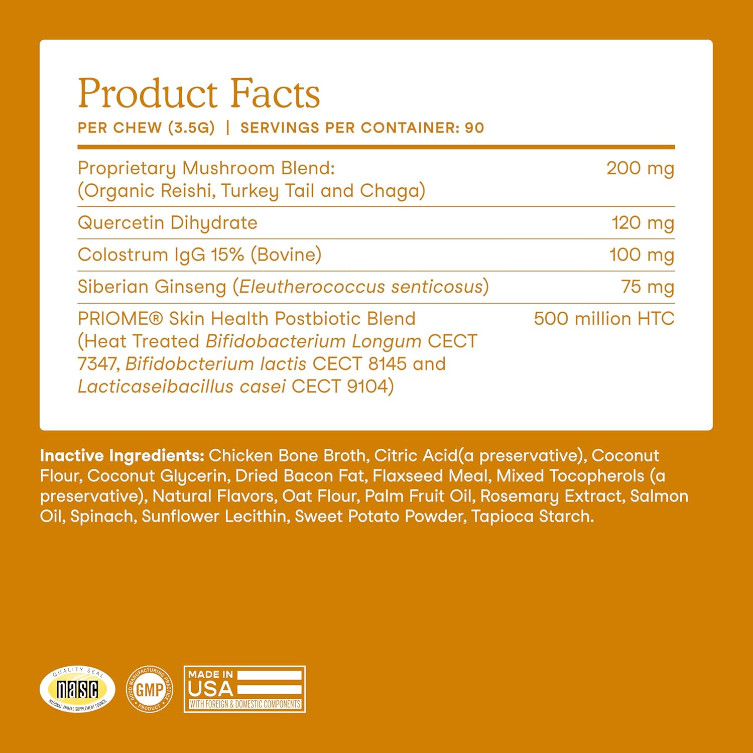 - Premium Traceable Ingredients That Go Beyond the Basics: Our dog allergy chews feature organic turkey tail, reishi, and chaga mushrooms, quercetin, colostrum, and Siberian ginseng; no fillers or artificial preservatives