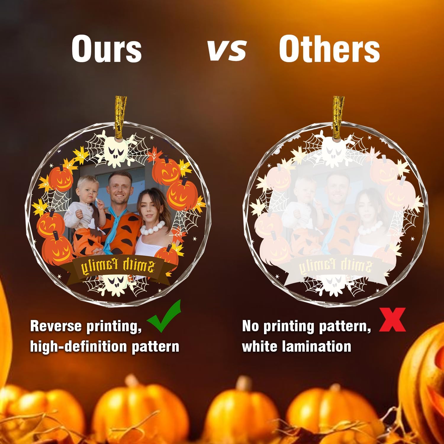 Custom Crystal Ornament, Personalized Halloween Family Hanging Ornament, Halloween Spooky Glass Hanging Decor, Spooky Pendent, Ghost and Pumpkin Hanging Gifts for Mom/Dad
