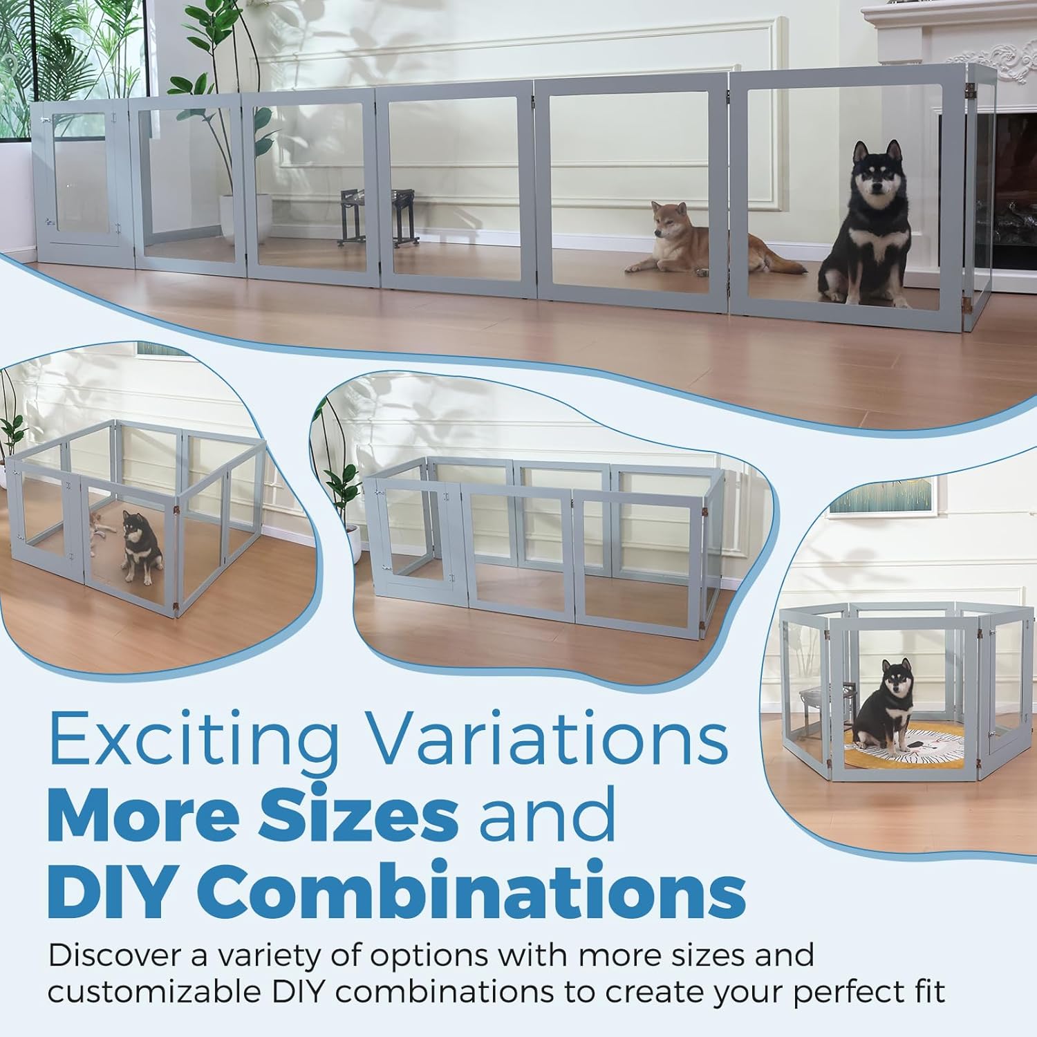 - Expandable and Versatile: The pen is modular, allowing for a customizable layout to suit your space. Set it up as a square, Round, rectangle, or L-shape depending on your needs, and even expand it by adding extra panels.
