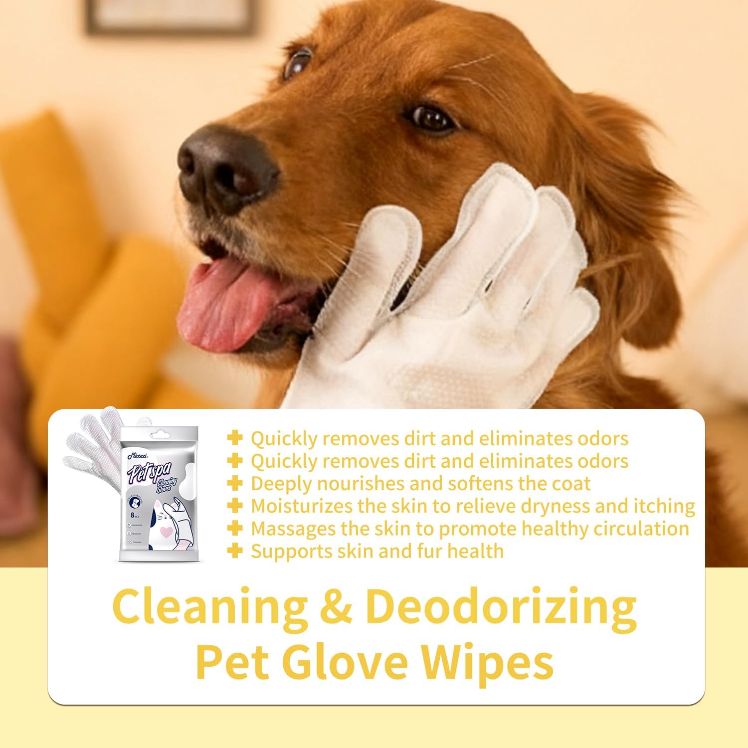 MIOSSZI 40 PCS Pet Gloves Wipes for Dogs & Cats Wipes Cleaning Deodorizing Hypoallergenic No-Rinse Pet Grooming Wipes Unscented Extra Thick Bathing Wipes for Pet Dry Cleaning Daily Care and Travel