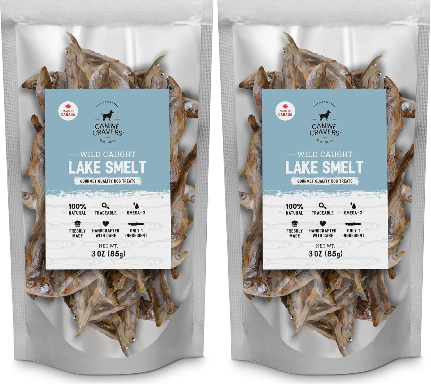 Canine Cravers Single Ingredient Dog Treats – Wild Caught Lake Smelt - Human Grade Air Dried Hypoallergenic Pet Food – Grain, Gluten, and Soy Free – 100% All Natural – 3 oz (Pack of 2)