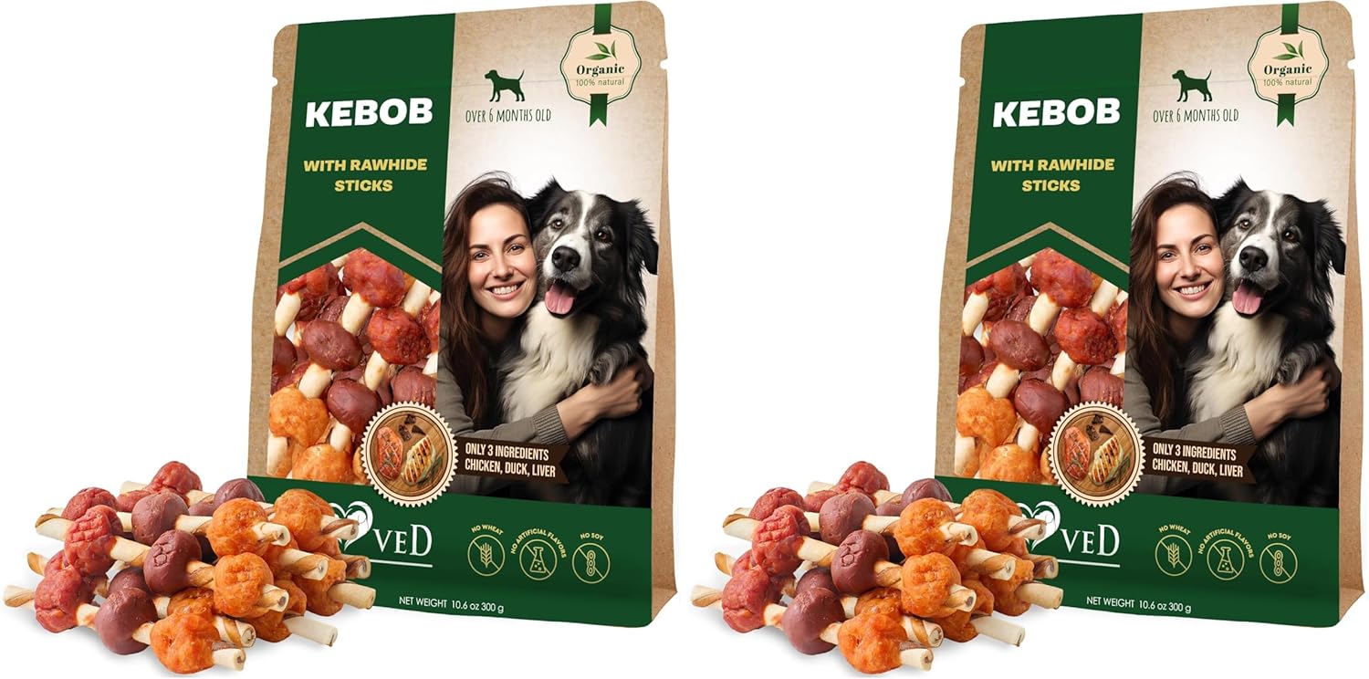Dog Treats Rawhide Kabobs with Duck & Chicken Human Grade Meat 11 Oz - All Natural & Dried Snacks - Grain Free Long Lasting Chews for Large & Small Dogs - Best Sticks for Training (Pack of 2)