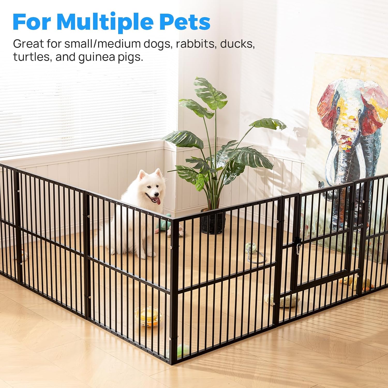 - [Safe and comfortable play area]: Pet exercise pens work well as play areas for dogs or non-climbing small animals including rabbits, ducks, turtles, and guinea pigs. Pets are free to move and play in the pet playpen and importantly, owners don't have to stare at them all the time when they're busy.