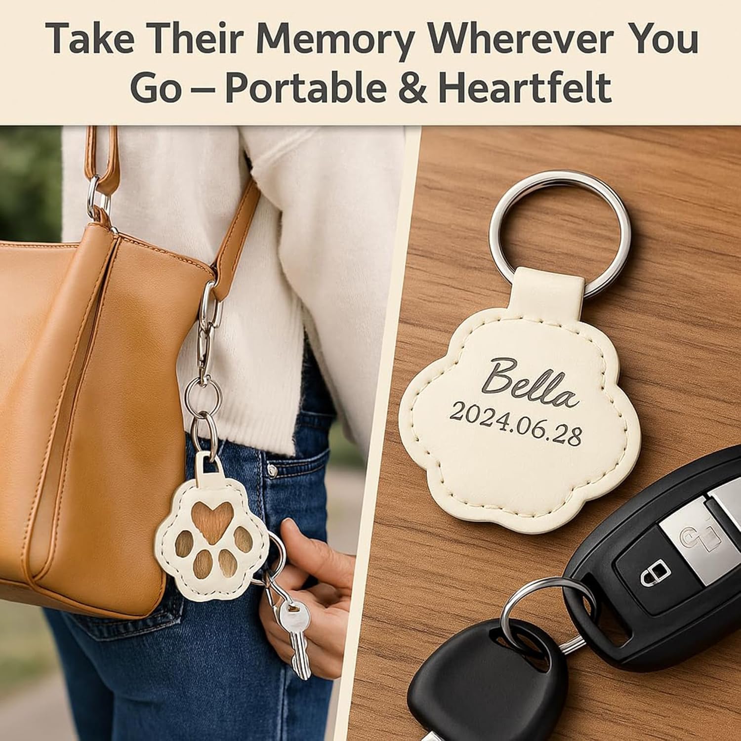 Custom Pet Dog Hair Keychain - Dog/Cat Fur Storage Keepsake, Paw Print Leather Keychain for Memorial Gifts for Pet Lovers, Portable Pet Fur Collector Charm for Keys, Bag, or Purse