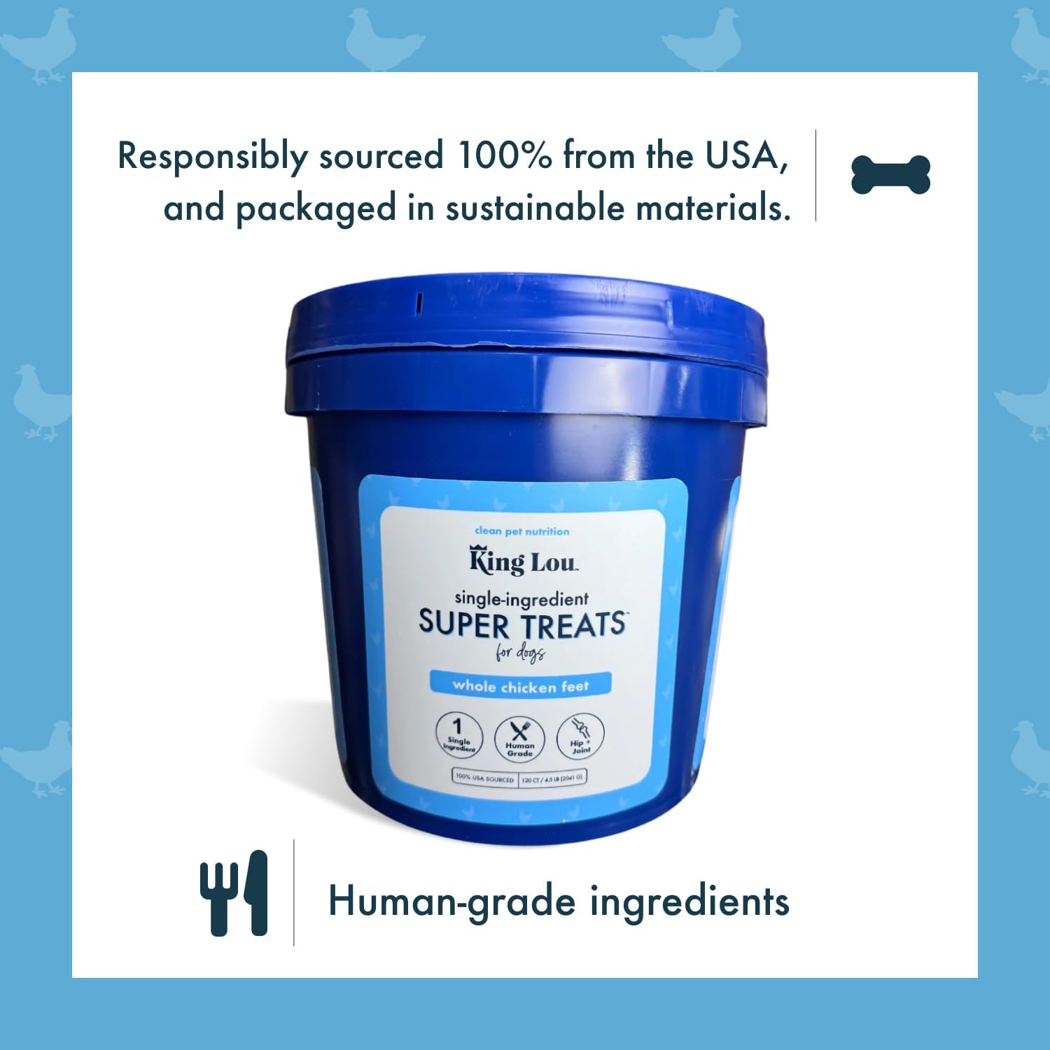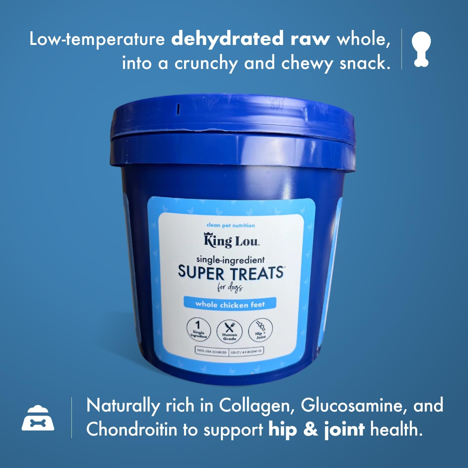 King Lou Chicken Treats – Whole Dehydrated Chicken Feet Chews – Protein-Rich Collagen Chews for Dogs – Single Ingredient Crunchy Treats – 120 Count